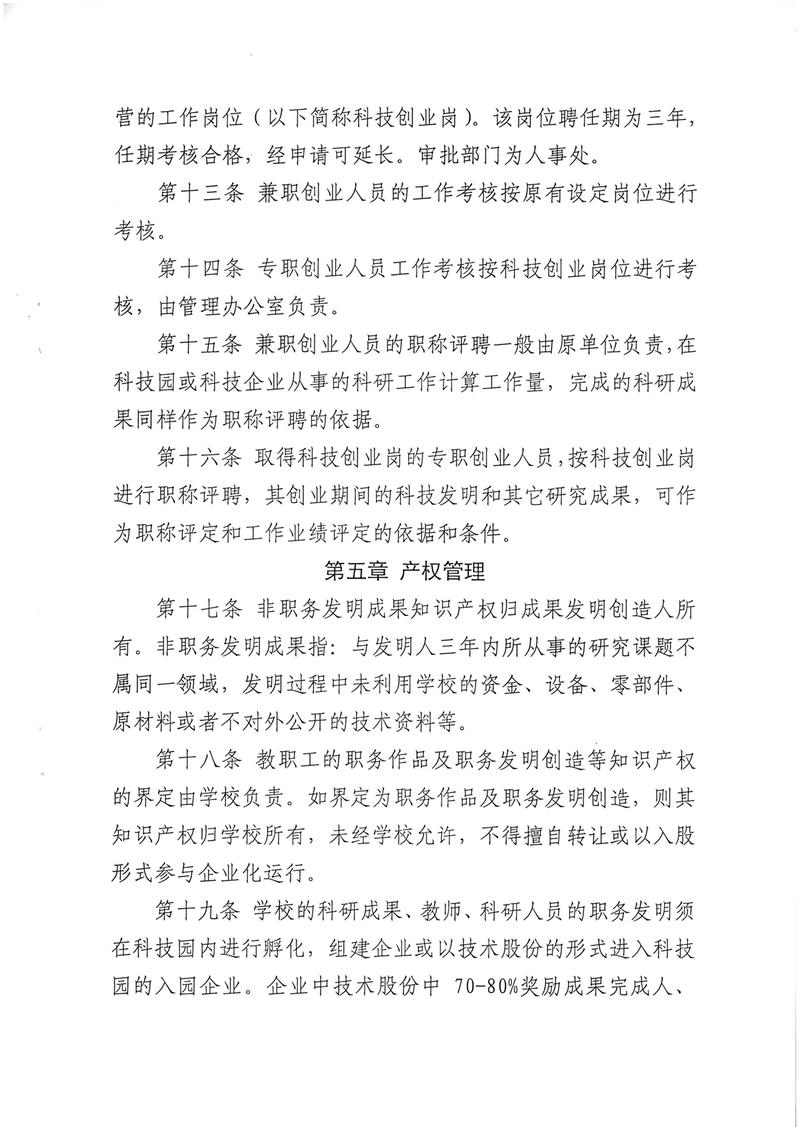 关于印发《四川师范大学教职员工进入科技园创业的管理办法(试行)》的通知