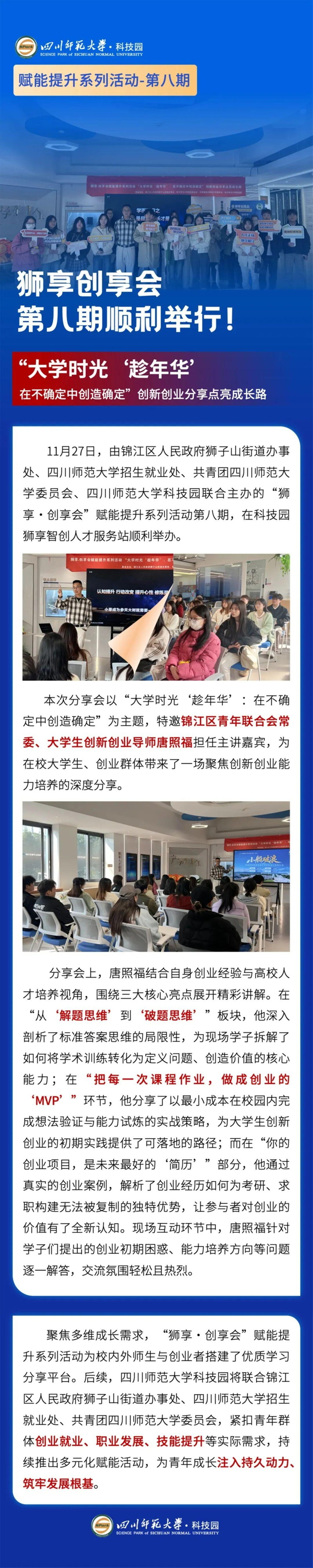 狮享・创享会|“大学时光‘趁年华’在不确定中创造确定”创新创业分享点亮成长路